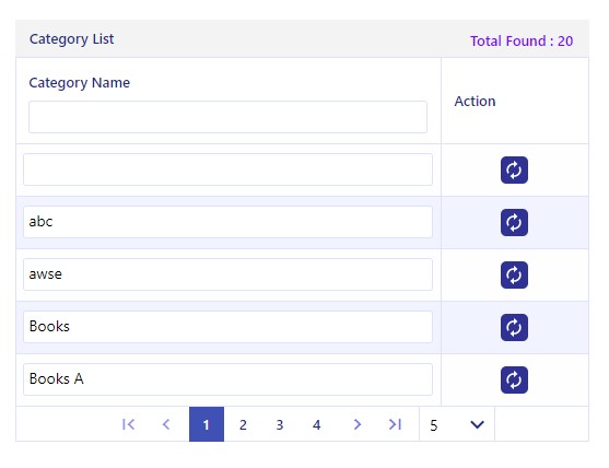 # প্রয়োজনে তৈরিকৃত ক্যাটাগরির নাম পরিবর্তন করতে চাইলে নিচের তালিকায় পরিবর্তন করে নিতে হবে। এরপর ডানদিকের Action কলাম থেকে আপডেটের চিহ্নে ক্লিক করলেই নামটি আপডেট হয়ে যাবে।